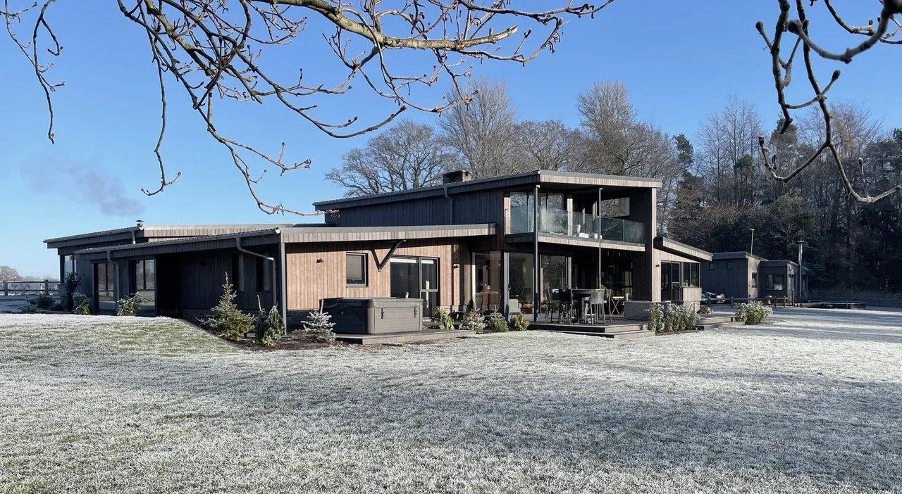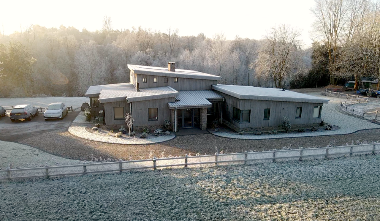 The house runs itself with a Hybrid heating system designed by Andrew. It benefits from solar gain in winter but the glass on the south elevation is protected in the summer by the cantilevered roof.